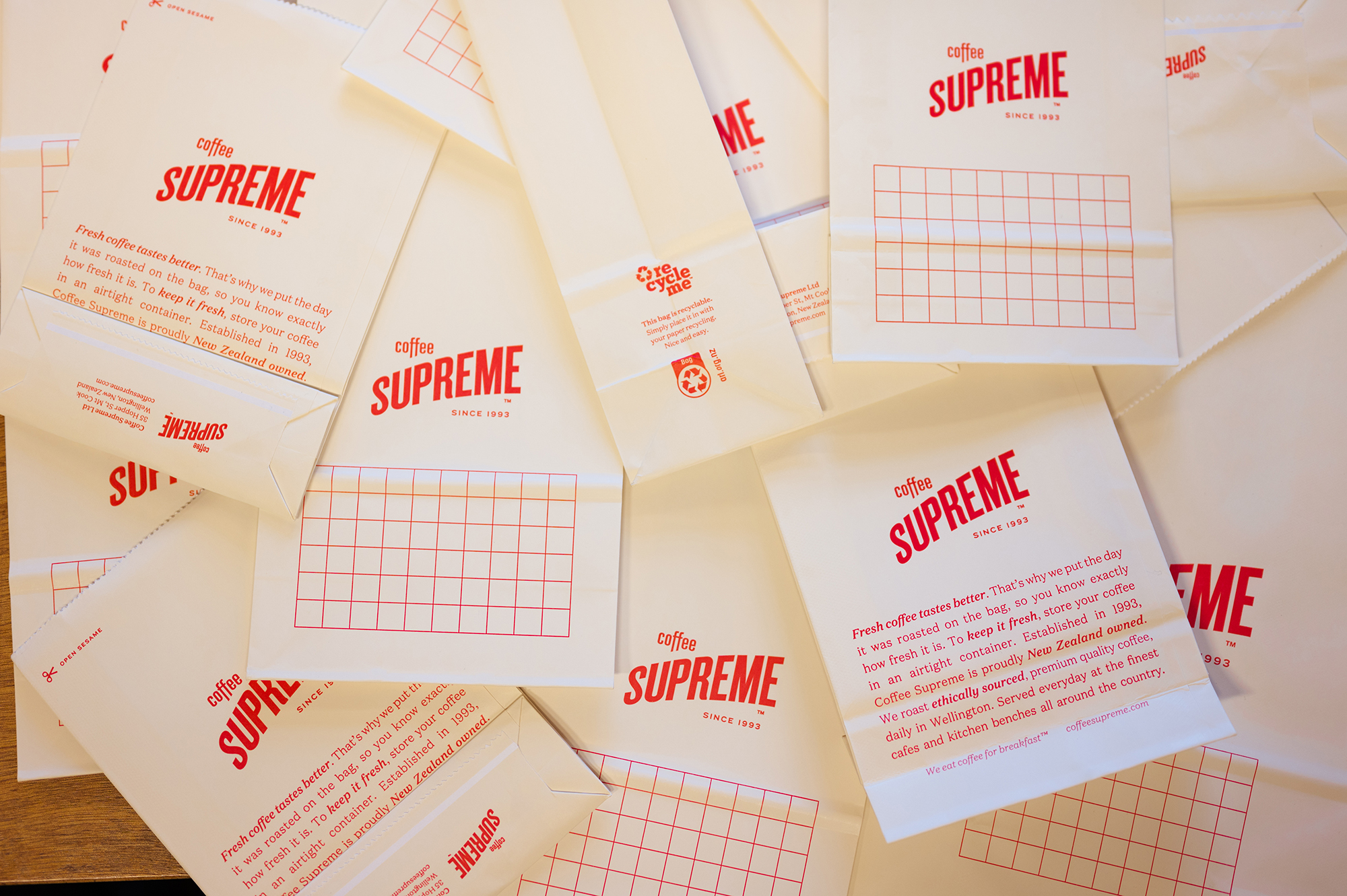 Here at Supreme, we live by our quality and freshness promise to you. We put a tonne of time and effort into traveling the world sourcing high-quality, sustainably farmed green beans direct from farmers at origin. So having a bag that protects our coffee is a top priority. There’s no silver bullet. Until recycling technology and processing catches up, and innovation leads us out of plastic, the plastic liner is still a critical freshness barrier.