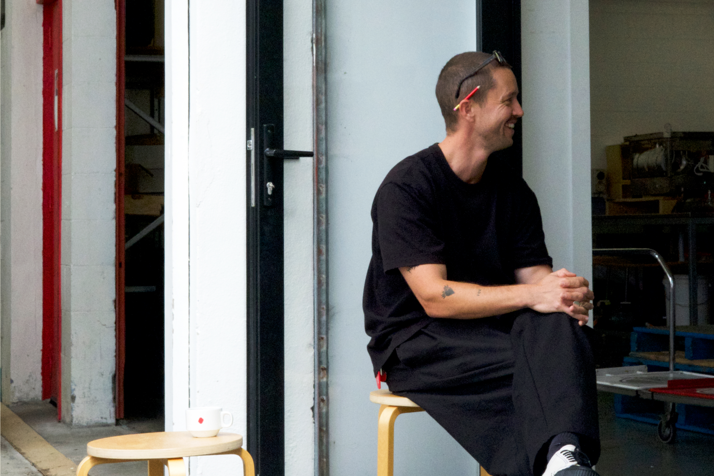 A: If I'm not dropping into one of the many amazing cafes around town first thing, I can be found dragging a stool outside of our wholesale office to (hopefully) get some sunshine and caffeine into me while I gather my thoughts and scroll through emails. Once thoughts are very roughly together, emails are squashed, and I can see the 'see you at the bottom' message on our stacker mug — I'm usually out and about.