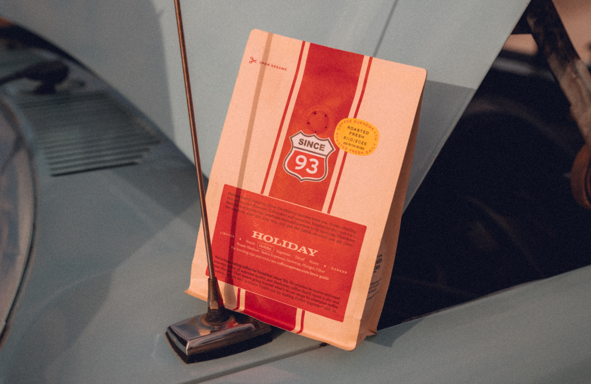 An easy-drinking, rich coffee, with flavours of lemon, lime and lavender, inspired by the open road. Made for rest stop brews, beachside chats and nowhere-to-be mornings.